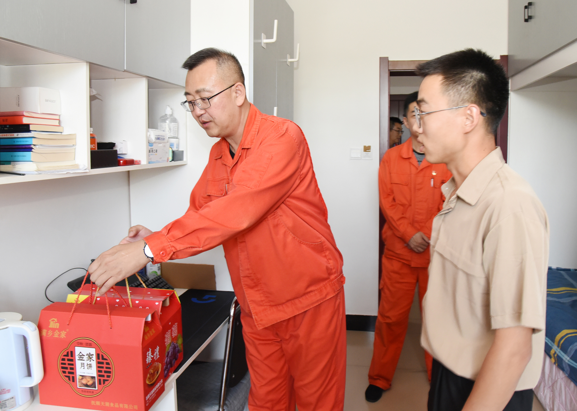 月滿中秋,家好月圓。在中秋佳節(jié)即將來到之際,9月7日,撫順特鋼常務(wù)副總經(jīng)理、黨委副書記、紀(jì)委書記、工會主席祁勇帶領(lǐng)公司工會、組織人事處、后勤管理處相關(guān)人員來到大學(xué)生員工宿舍,走訪慰問了住宿大學(xué)生員工。他們?yōu)榇髮W(xué)生員工送去了月餅、葡萄等中秋禮品,并送去了節(jié)日的問候和祝福,讓大學(xué)生員工體會到了企業(yè)的關(guān)懷和溫暖。