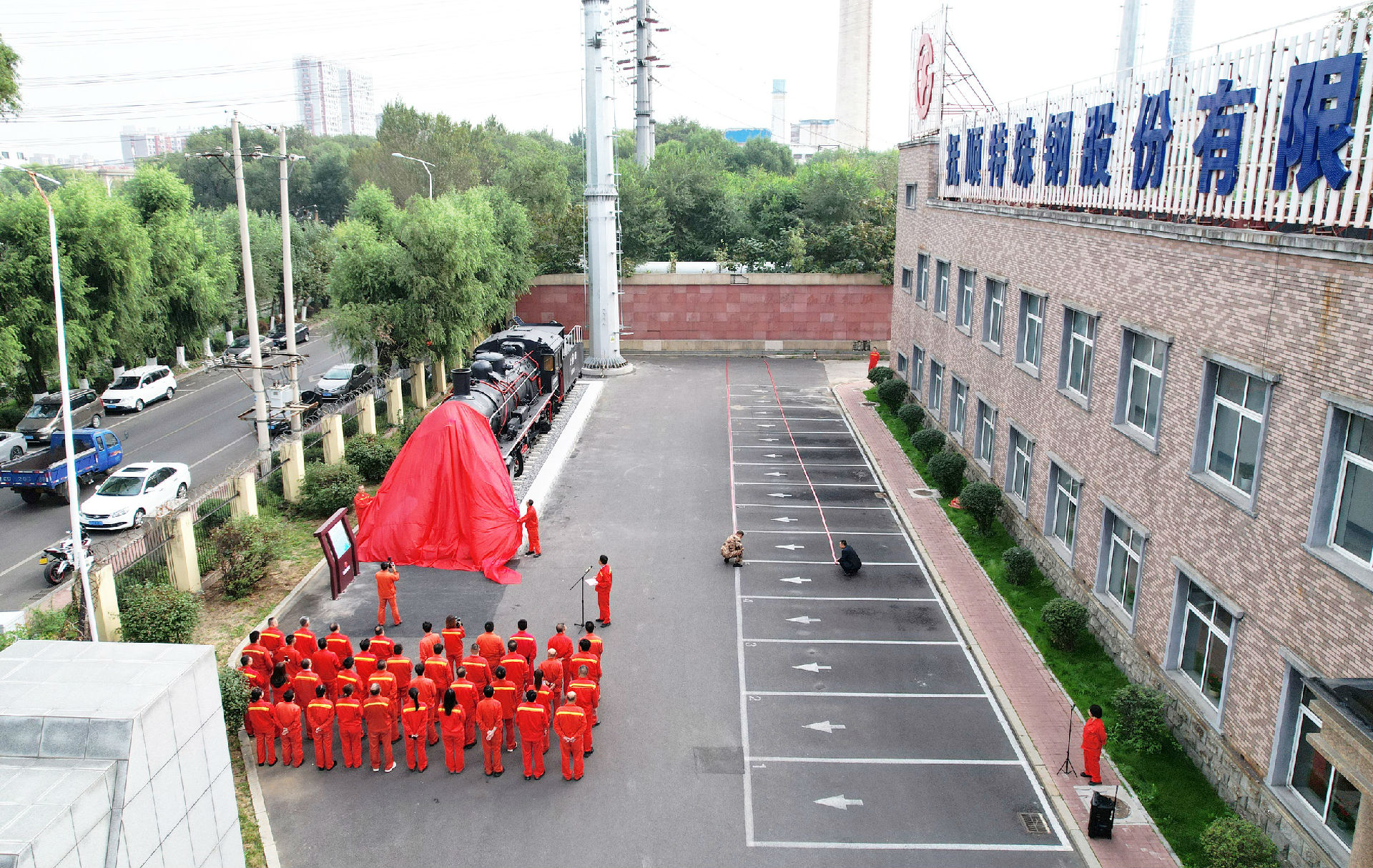 9月29日上午9時(shí)08分,撫順特鋼在辦公樓北側(cè)隆重舉行蒸汽機(jī)車文創(chuàng)項(xiàng)目落成揭幕儀式。撫順特鋼第一副總經(jīng)理穆立峰,常務(wù)副總經(jīng)理、黨委副書記、紀(jì)委書記、工會(huì)主席祁勇以及各單位員工代表50余人參加揭幕儀式。公司工會(huì)副主席、組織人事處處長(zhǎng)朱志勇主持揭幕儀式。